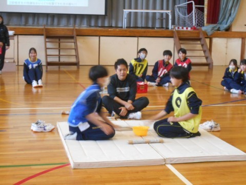 朝早くから,各クラスの学級代表さんを中心にコートを作り,審判はサッカー部さんが公正・公平なジャッジをしてくれました。