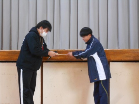 本日,3年生はクラスマッチを行いました。各クラスの学級代表が中心となって内容を考え,当日の司会進行や審判もすべて生徒たちが行ってくれました。競技内容は,「サッカー」,「プリンス&プリンセスドッジビー」,「百舌鳥坂46(クイズ大会)」です。