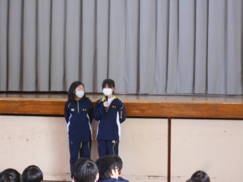 「百舌鳥坂46」の様子です。クイズの内容も,学級代表さんが考え,まとめてくれました。みんな楽しんで,そして盛り上げてくれたクラスマッチになりました。