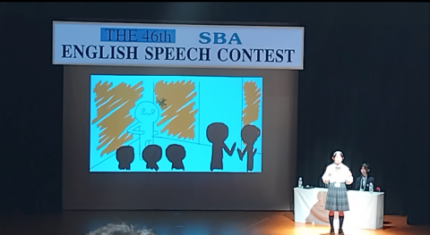 3名ともこれまでに培った英語力を活かし,自分の意見や考え,思いを表現力豊かに,聞いている人にしっかりと伝わるプレゼンテーションができました。