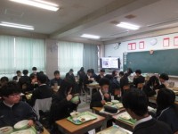 13日6限目に体育館で2年生の学年集会がありました。