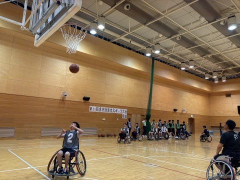 男子バスケットボール部です。本日は車椅子バスケを体験させていただくために、SAKAIsunsさんにお邪魔させていただきました。普段の部活動ではおこなえない、貴重な経験をさせていただきました。