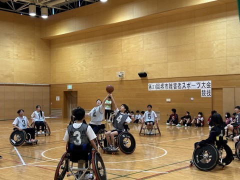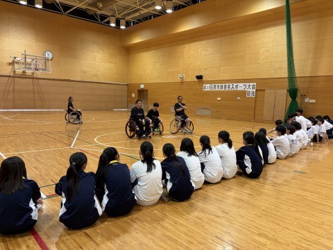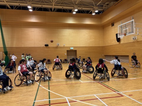 4/11(土)にSAKAIsunsさんにお願いをして、車いすバスケを体験させていただきました。基本的なシュートなどの練習から試合までさせていただき、最後には講習もしていただきました。3時間程の体験でしたが、生徒たちは常に楽しそうにしていました。