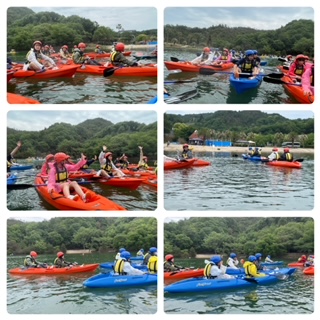 3年生修学旅行 絵付体験、シーカヤック(水上の写真)の様子です。