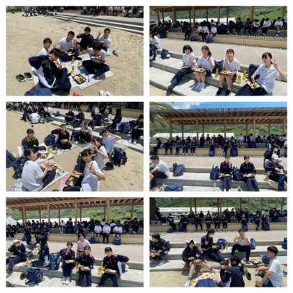 3年修学旅行 2日目 しまなみ海道 昼食、開講式、出発その2