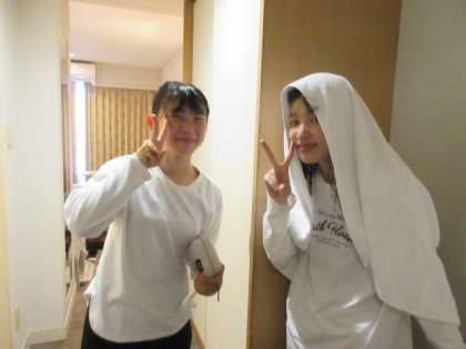 アジュール汐の丸に到着し、入浴と自由時間を過ごしています。