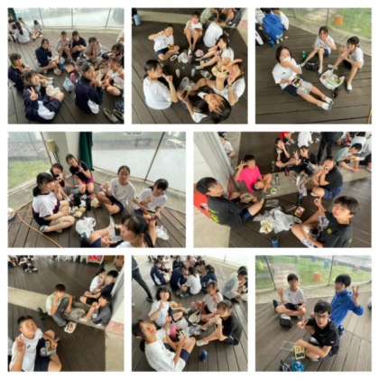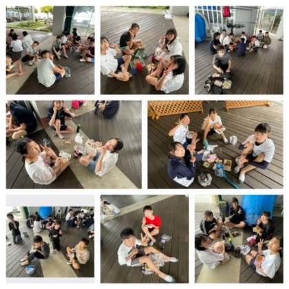 2年宿泊学習 1日目 ドラゴンボート、イカダ作り、お昼ご飯の様子