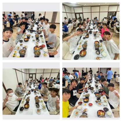 2年宿泊学習 1日目 ホテル入館式、夕食の様子