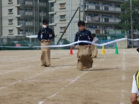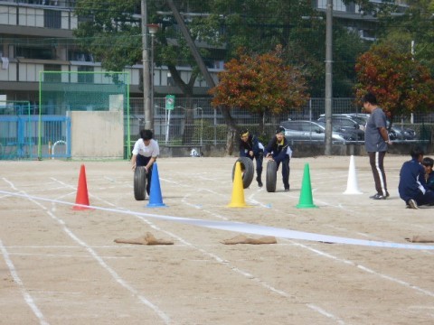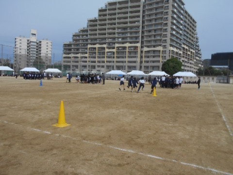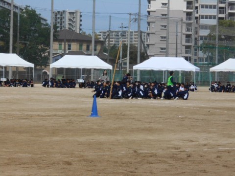 各種目の招集隊形・説明、学年種目の練習をしました。