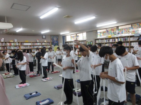 約80分の講演でした。実演や、生徒が椅子を使ってのシュート体験もありました。