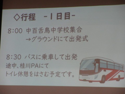 本日15:50~体育館で「2年宿泊学習保護者説明会」が行われました。