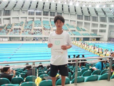 2年生の男子が100m自由形に出場し,4位を勝ち取りました。