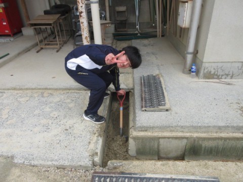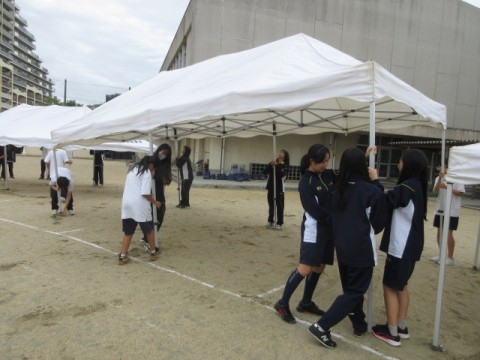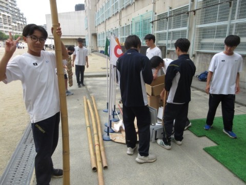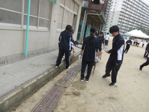 生徒席テント立て,競技用具の準備や溝掃除などしてくれました。