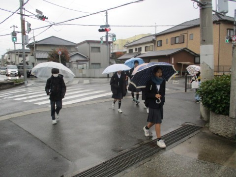雨の中,こどもたちは傘をさして登校してきました。今日から2学期末テストが始まります。今日の時間割は1限目 社会科 2限目 数学です。今年を締めくくれるよう,全力で取り組んでください。