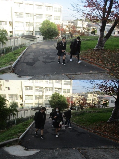 おはようございます。今日も子どもたちは元気に登校してきました。連休明けの25日から2学期末テストが始まりますので,この3連休はしっかりと家庭学習に取り組んでください。今日の時間割は金の1~5で,3年生は懇談のため午前中授業です。
