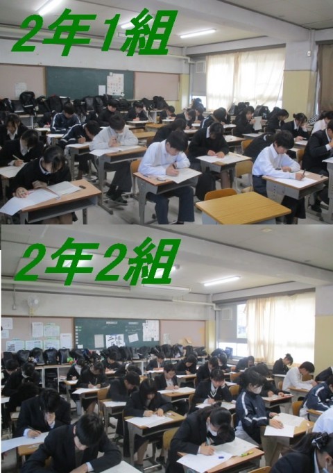 2年生の1限目の理科のテストの様子です。2年生のこどもたちにとっても今年を締めくくる大切なテストです。最後まであきらめず,全力で取り組みましょう。がんばれ2年生!