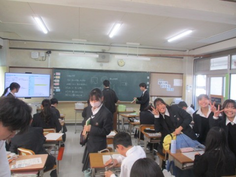 2年3組の3限目の授業は英語でした。今日の授業では「make+人・もの+形容詞」の意味・使い方を理解することに取り組みました。いよいよ学年末テストが来週に迫ってきて,こどもたちも集中して取り組んでいました。