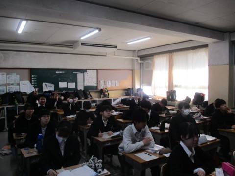 3年5組の5限目の授業は国語でした。3年生の国語は少人数授業を行っていて,今日の授業も教室と少人数教室に分かれて行いました。写真は教室の授業の様子です。今日の授業では「作文」の書き方について学びました。公立高校の国語のテストには作文があります。明日も公立高校の特別選抜(一部の子どもが受験します)が行われることもあり,こどもたちも集中して取り組んでいまいした。授業では書き方のポイントや採点の基準などについて学びました。