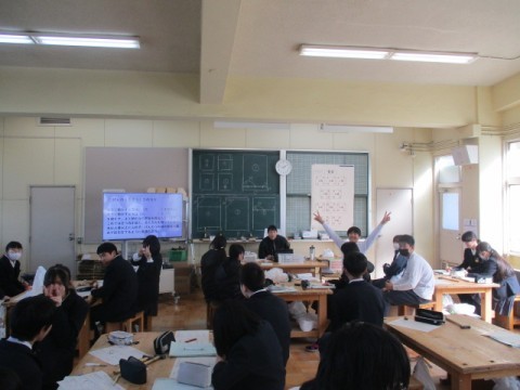 2年2組の4限目の授業は理科でした。単元名は「電流の正体」で,今日の授業ではオームの法則や電流のもとになる電子について学習しました。こどもたちは集中して取り組んでいました。