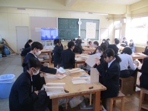 2年4組の3限目の授業は美術でした。今日の授業ではキーホルダーの製作に取り組んでいました。