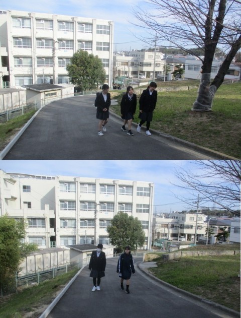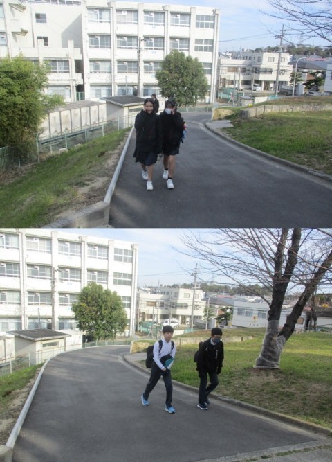 おはようございます。休み明け,こどもたちは元気に登校してきました。今週もしっかりとがんばりましょう。今日の時間割は月の1~5火の6です。また,明後日から3年生の卒業テストが始まります。3年生のみなさんはしっかりと準備をしてください。