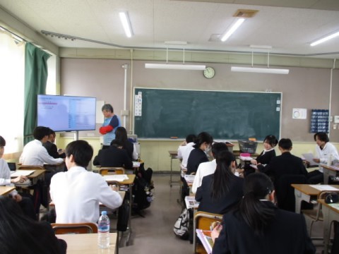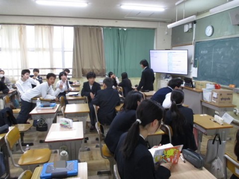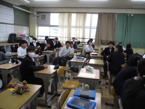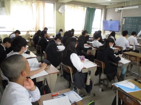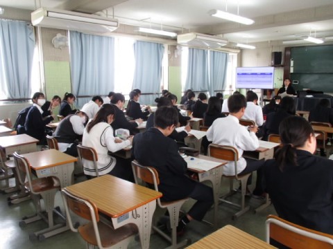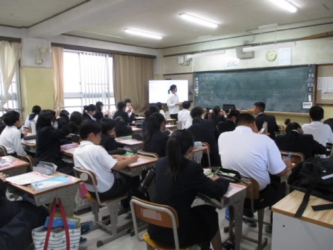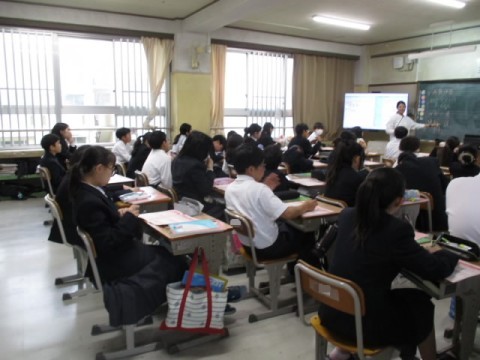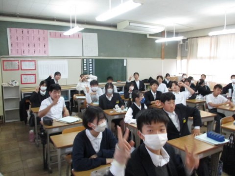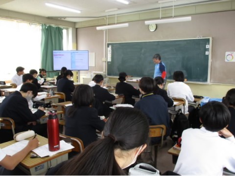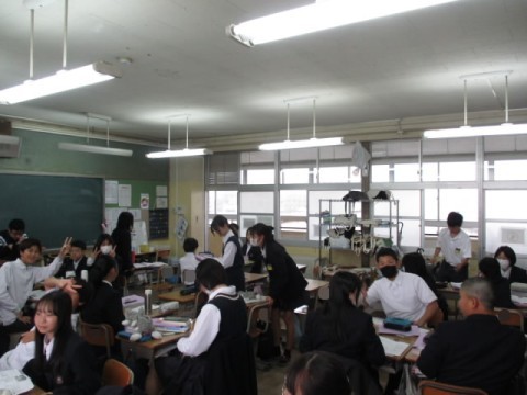 この時は、授業のはじめのほうだったので、今後使用するワーク等が配られているところでした。生徒から「めちゃ多いわ~」という声があがっていました。確かに、大変ではありますが、少しずつこなしていく中で、理解を深めていきましょう。