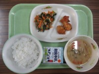 今日の給食です。メニューはハヤシライス、キャロットソテー、鶏肉のレモンソースです。