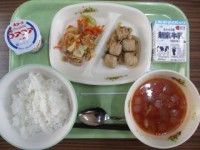今日の給食です。メニューはすき焼き,ちくわの磯辺揚げ,だいこんサラダでした。今日も美味しくいただきました。