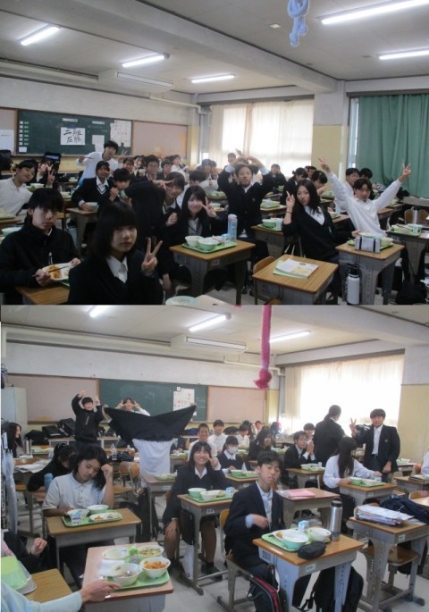 2年生の給食の様子です。みんな楽しそうに食べていました。