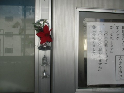 「花咲」のみなさんがクリスマスの飾りを,玄関や各教室に用意してくださいました。おかげさまで,学校がとても華やかな雰囲気になりました。花咲の皆様,ありがとうございます。