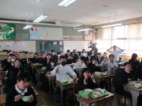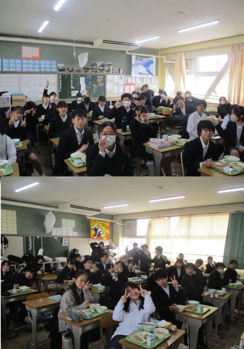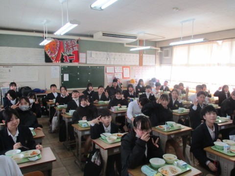 1年生の給食の様子です。1年生のインフルエンザの流行もおさまってきて,こどもたちは元気です。