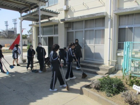 卒業式に向け,放課後に部活動生徒が校内の清掃をしてくれました。お世話になった先輩のために気持ちを込めて校内をきれいにしてくれました。参加してくれたみなさん,ありがとうございました。