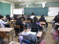 4/16 2年4組 学習の様子 公開日 2026/04/16 更新日 2026/04/16 2年生 社会の授業です。この時は、歴史分野の授業でした。今の私たちからすると、地球が動かず(自転や公転せず)宇宙が回っていたという説を信じていた時代に人々がどんな「常識」で生活していたのかは、興味深いですよね。科学や思想の発展が、私たちの理解を深め、歴史を作ってきたことを知るのは楽しいですね。