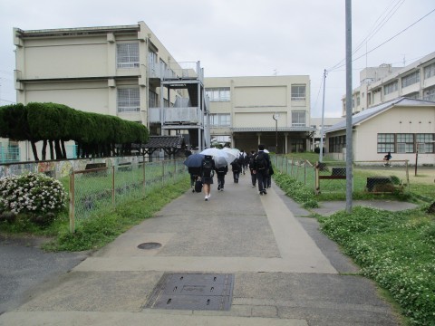 今朝は、登校時間に雨が降っていました。この後、天気は回復するとの予報(実際、雨は上がりつつあります)です。