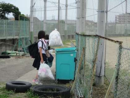 外に設置されたコンテナにごみ袋を出しに行ってくれています。