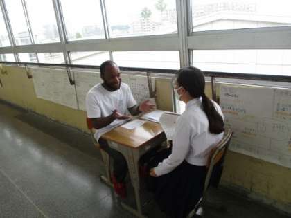 2−2 英語 先生とマンツーマンでスピーキングテストを実施しています。
