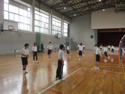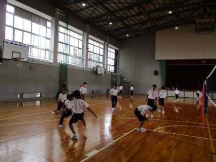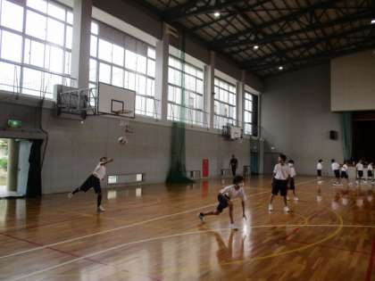 1年1・2組の3限目の授業は体育でした。1年生の男子の体育は現在、バレーボールに取り組んでいます。レシーブが難しく、なかなかラリーが続きませんが、子どもたちは楽しそうに取り組んでいました。