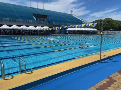 水泳部の堺市総体の様子です。子どもたちは自己ベストを目指し、全力で泳いでいました。