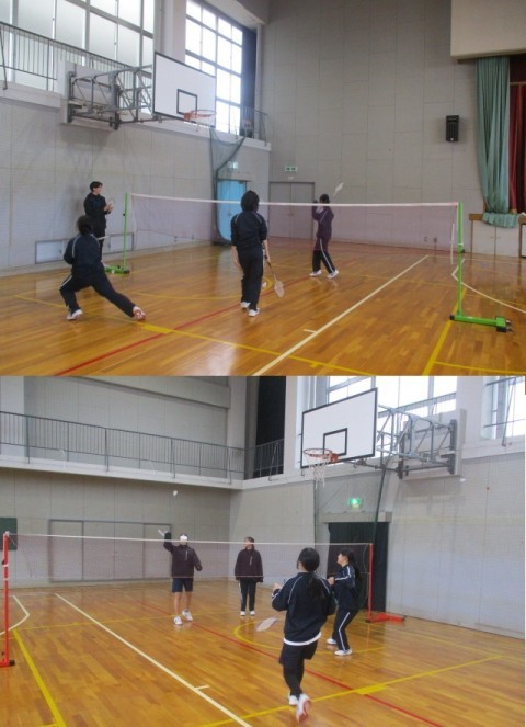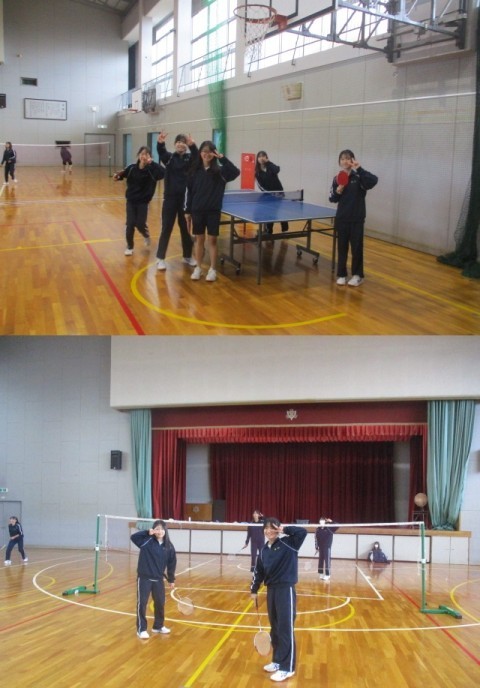 2年2・5組の4限目の授業は体育でした。女子は体育館で卓球とバトミントンに取り組んでいました。みんな楽しそうです。