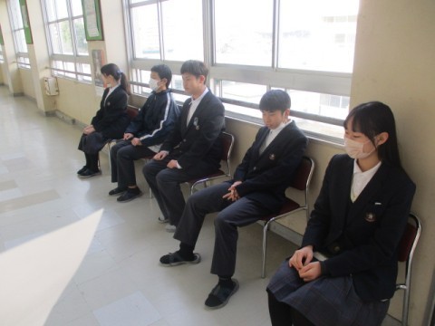 3年生の1限目の国語のテストの様子です。私立高校の入試まであとわずかとなり,こどもたちの集中力も上がってきています。ここからは体調管理も大切です。睡眠をしっかりとり,バランスの良い食事にも注意してください。がんばれ3年生!