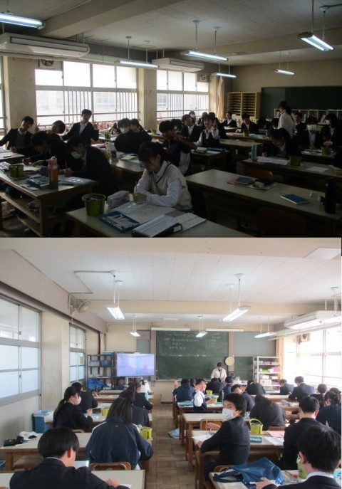 3年生の3限目の授業です。大阪府の私立高校の入試が来週の火曜日に迫っています。みなさんしっかりがんばってください。