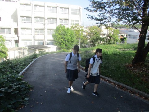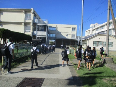 おはようございます。今日も天気の良い中,子どもたちは元気に登校してきました。今日は6限目に生徒会の認証式が行われます。また,明日からは2学期の中間テストが始まります。しっかりと学習に取り組みましょう。