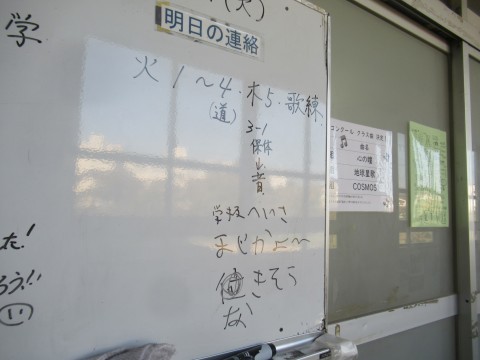 さて、いよいよ明日は「中学校生活最後の」体育大会です。練習で気も手も抜かなかったのは、誰よりも、君たちです。全体練習では、一番にグラウンドに整列して、「これが俺達が作る体育大会だ」と言わんとする姿勢に、きっと下級生も感化されていたと思います。3組担任でもあるあの先生が前に立って、「本番は良い日にしましょう」と言っていたのを聞くみんなの真剣な眼差し。予定はされていなかった予行での「男子リレー、模擬レース」。終礼時に聞こえてきた掛け声。どこを切り取っても青春の1ページ。