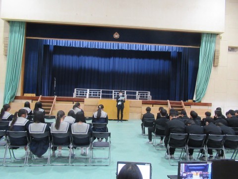 月例の全校集会。久しぶりの参集型の集会となりました。最高学年として、体育館の真ん中で凛として話を聞く姿勢が素晴らしい!身だしなみもバッチリです。