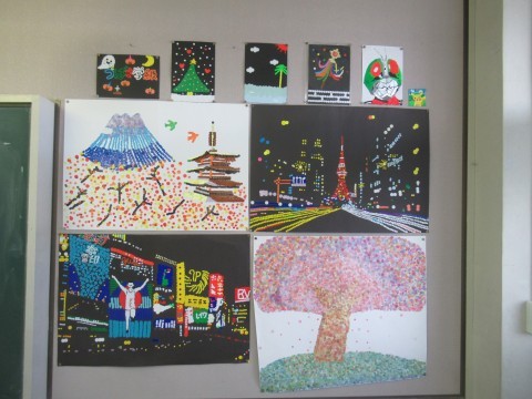 つばさ学級からも、シールを貼って美しい作品も作っていました。(細かく見ると、光を黄色のテープで表現していたり大阪の名所があったり…いい感じです!)