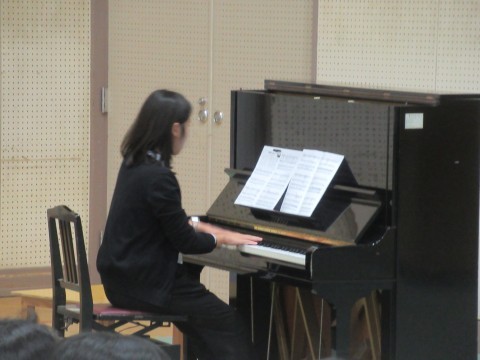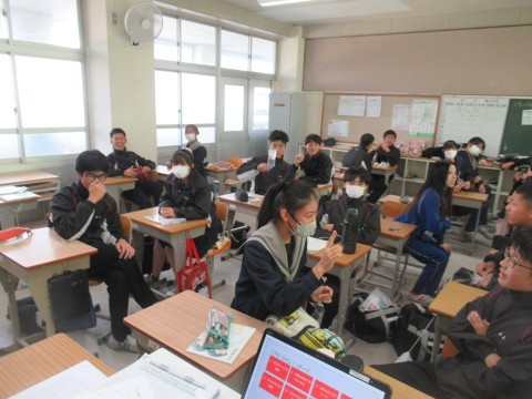 響かせてくれました。最初は音程が合わず苦戦したり,集中できない人がいて,クラス全体で