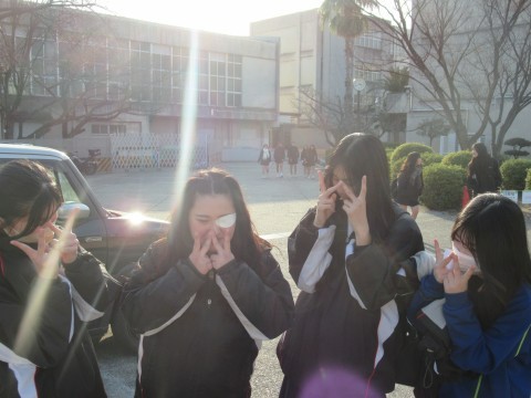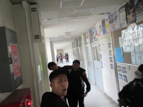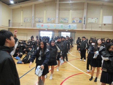 1月27日(火),昼休みの様子と下校の様子です!先生も生徒と一緒にバレーをしています~。3年生は明日から卒業テストです!ファイト~!