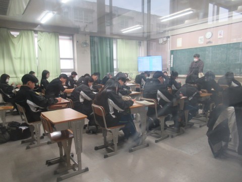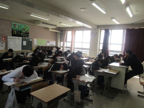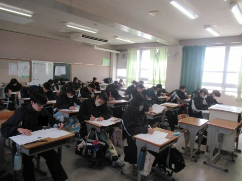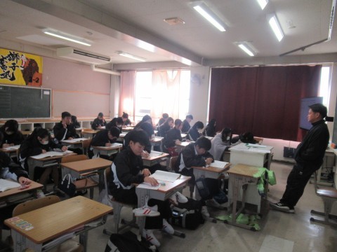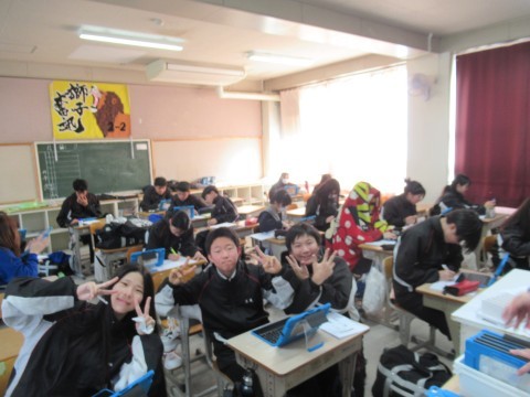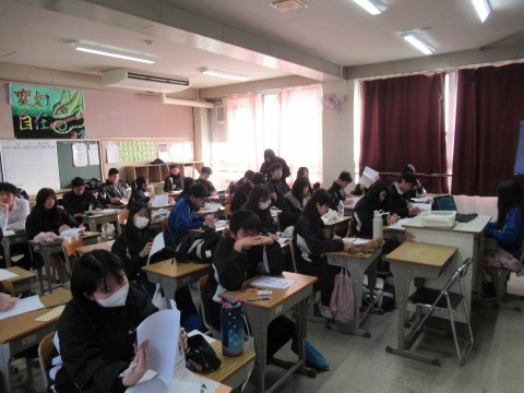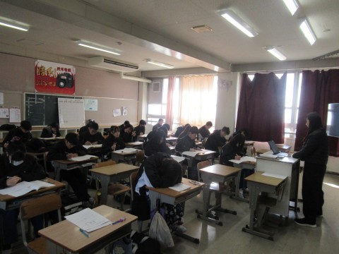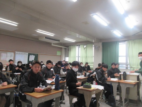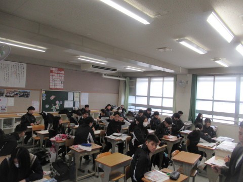 1月28日(水),3年生!卒業テスト1日目!朝早くから登校し教室で勉強している子もちらほら・・・。あと2日頑張れ~!