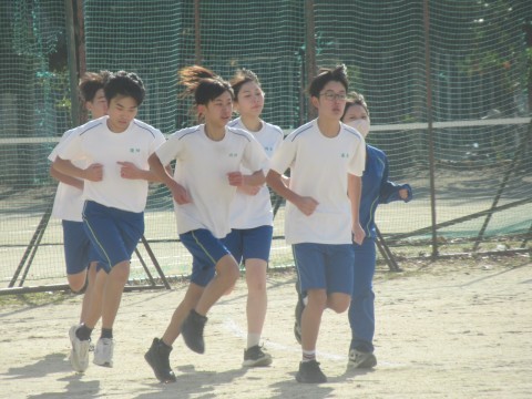 本日の体育は持久走!(女子1000m,男子1500m)「風邪ひくから嫌や~!」という意見を言っている人もいましたが、受験は体力勝負!逆に、風邪を引かない体力づくりのためにしっかりと走ってほしいと思います!上位の結果が廊下に掲示されていますので、そこにランクインできるように燃えている人もいました!