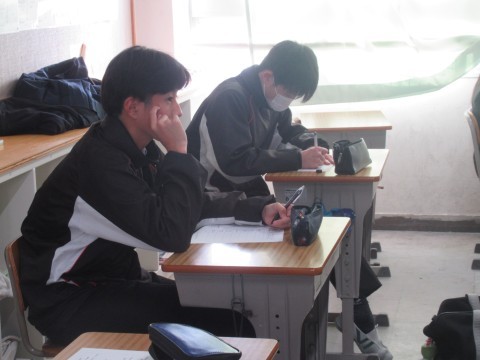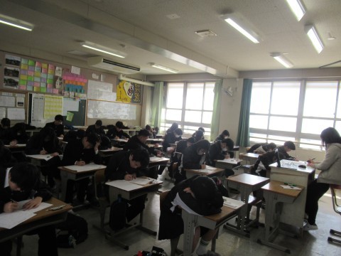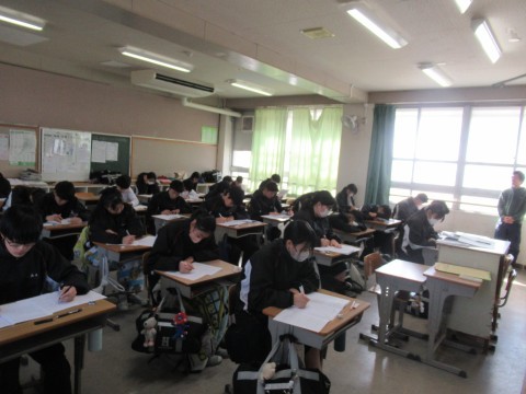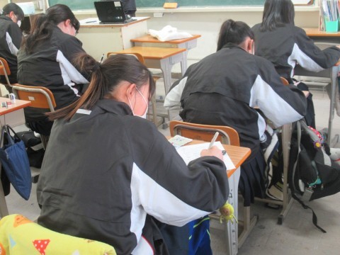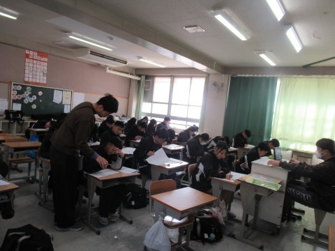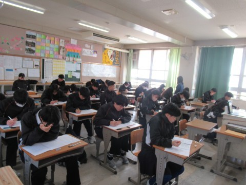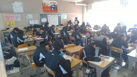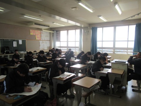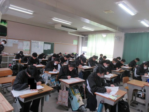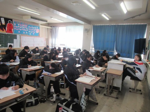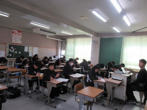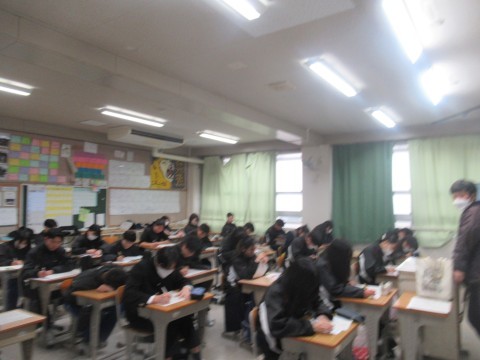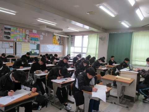 1月14日(水),1・2年生はチャレンジテスト,3年生は実力テストに取り組んでいます!ファイト!
